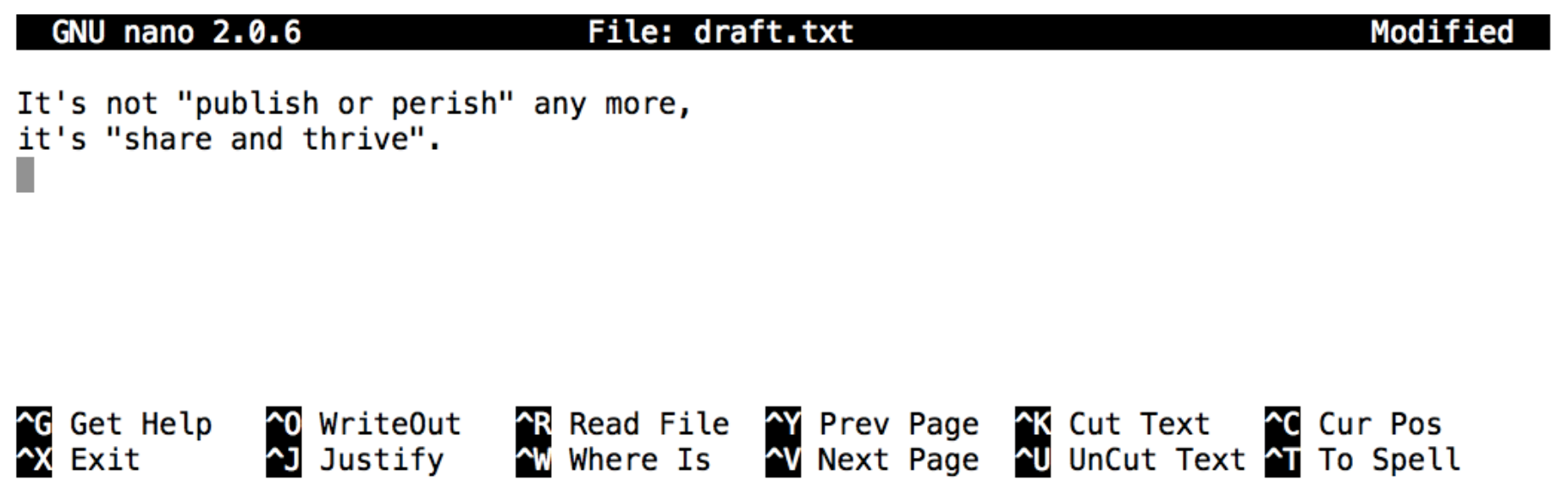 Using the shell will take some effort and some time to learn. While a GUI presents you with choices to select, CLI choices are not automatically presented to you, so you must learn a few commands like new vocabulary in a language you’re studying. However, unlike a spoken language, a small number of “words” (i.e. commands) gets you a long way, and we’ll cover those essential few today.